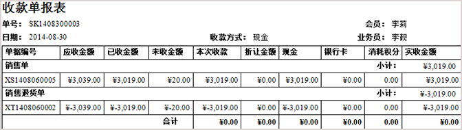收款完成后可以打印收款单,如下图: