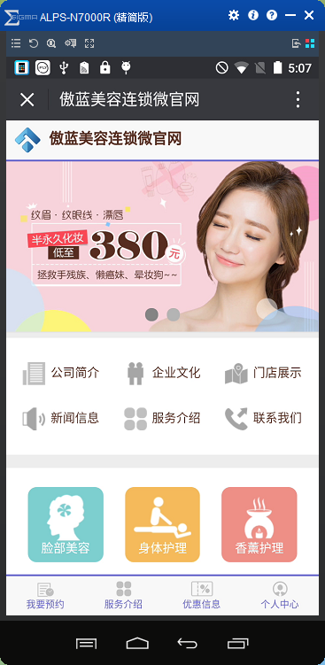5、美容院微信公众号微官网,展示美容院的整体实力,或是宣传门店的优惠信息,如图: